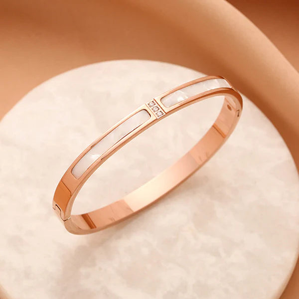 Rose Gold Plated Stainless Steel Mother Of Pearls Contemporary Bracelet For Women