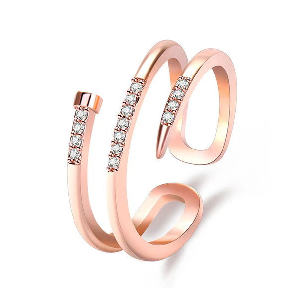 Rose Gold Plated American Diamond Studded Nail Shape Contemporary Korean Finger Ring
