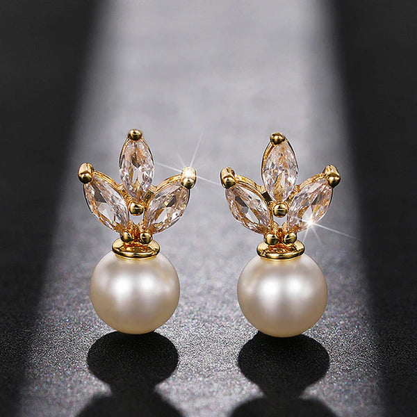 Gold Plated American Diamond Studded Pearl Drop Korean Earrings