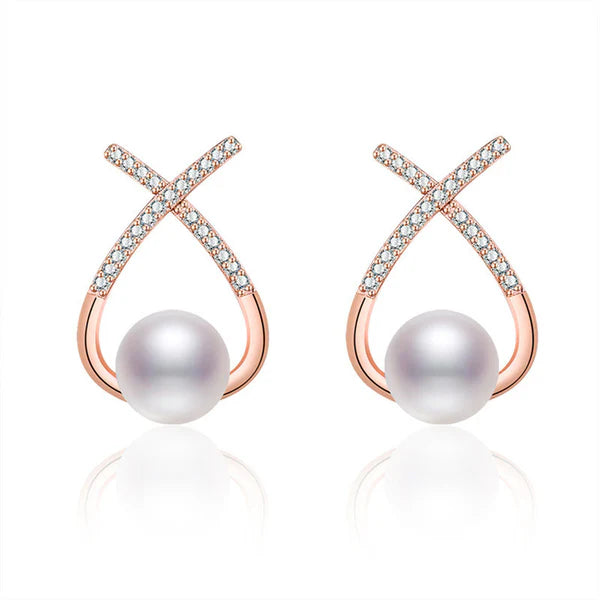 Rose Gold Plated American Diamond Studded Cross Shape Korean Stud Earrings